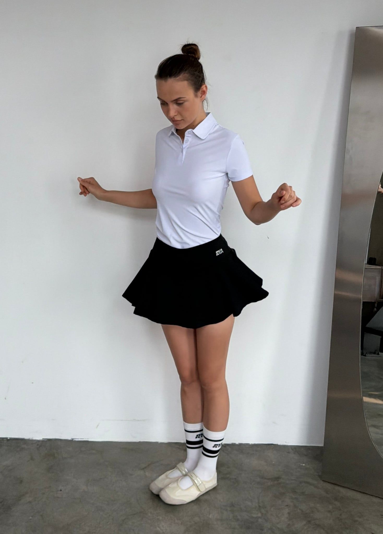 - Kiểu áo Regular-fit, vừa vặn cơ thể, form áo có cổ (polo), tay ngắn thoải mái, không có mút lót.