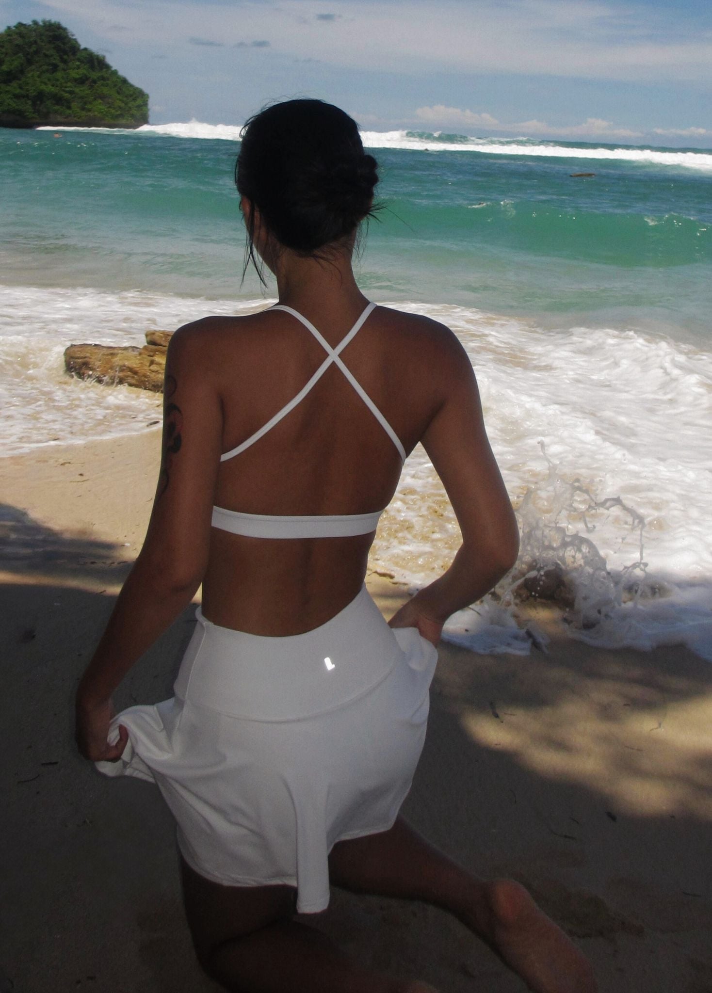 - Chân váy 2 lớp dày dặn, lớp xòe nhẹ bên ngoài và lớp lót quần short cùng màu bên trong